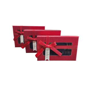 KUTU - DİKDÖRTGEN - 3' lü SET - [ PENCERELİ ]-KIRMIZI