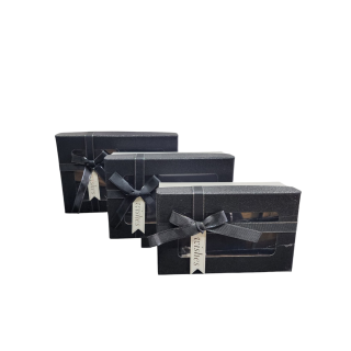 KUTU - DİKDÖRTGEN - 3' lü SET - [ PENCERELİ ]-SİYAH